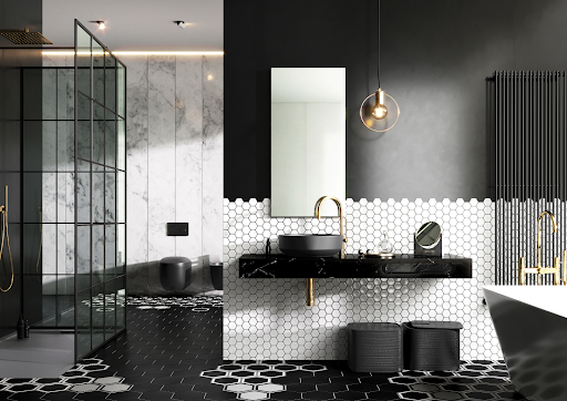 Quá nhàm chán với các tone màu thường thấy, bạn cần thứ gì đó mạnh mẽ hơn, táo bạo hơn trong không gian nhà tắm của mình. Kết hợp trắng và đen, phối cùng nội thất thuần hiện đại hoặc thuần cổ điển, với các đường nét mềm mại một chút để dung hòa lại sự cứng cáp của hai tone màu mực thước này. Một phòng tắm mê hoặc, đặc biệt cũng không kém phần bứt phá sẵn sàng cho mọi hoạt động thư giãn của bạn.