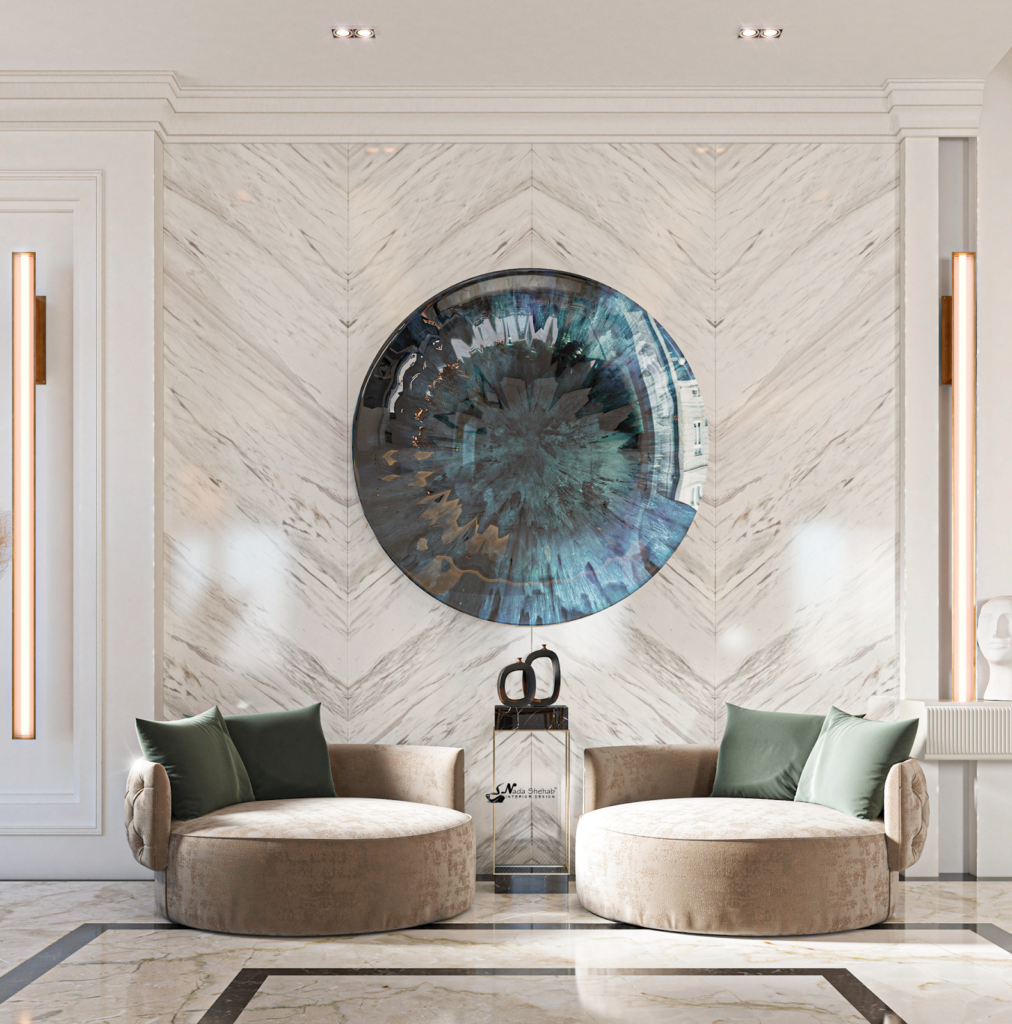 Thường để đạt hiệu ứng tân cổ điển cao nhất, các nhà thiết kế sẽ lồng ghép, kết hợp các họa tiết hoa văn đặc biệt với màu sắc cổ điển quý tộc để tôn lên nét chấm phá trong tổng thể hiện đại tối giản của ngôi nhà.