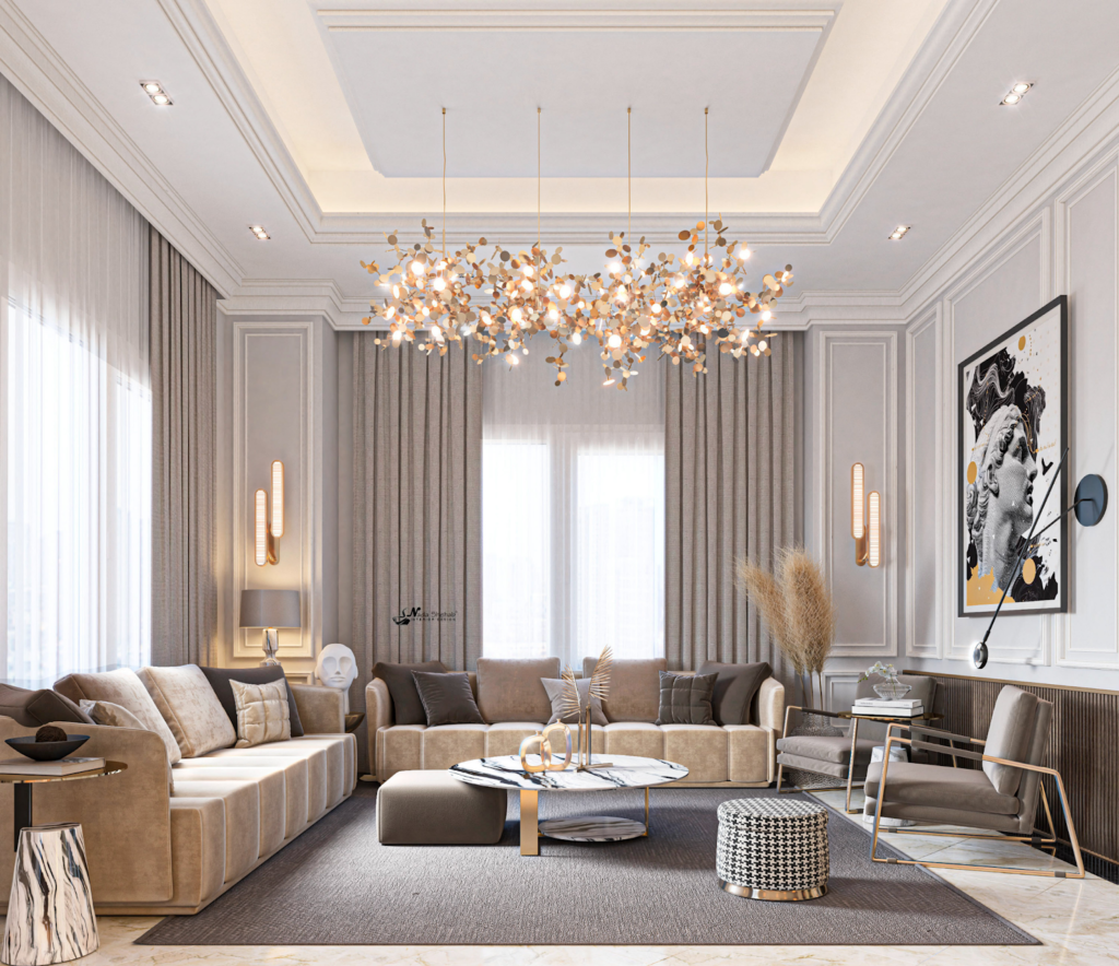Đúng như tên gọi, Neoclassical – Tân cổ điển hướng đến sự đơn giản, cân đối trong đường nét, làm nổi bật một số chất liệu và kiểu dáng cổ điển nhưng tổng thể chung vẫn hướng đến vẻ đẹp thanh lịch của kiến trúc Châu u hiện đại.