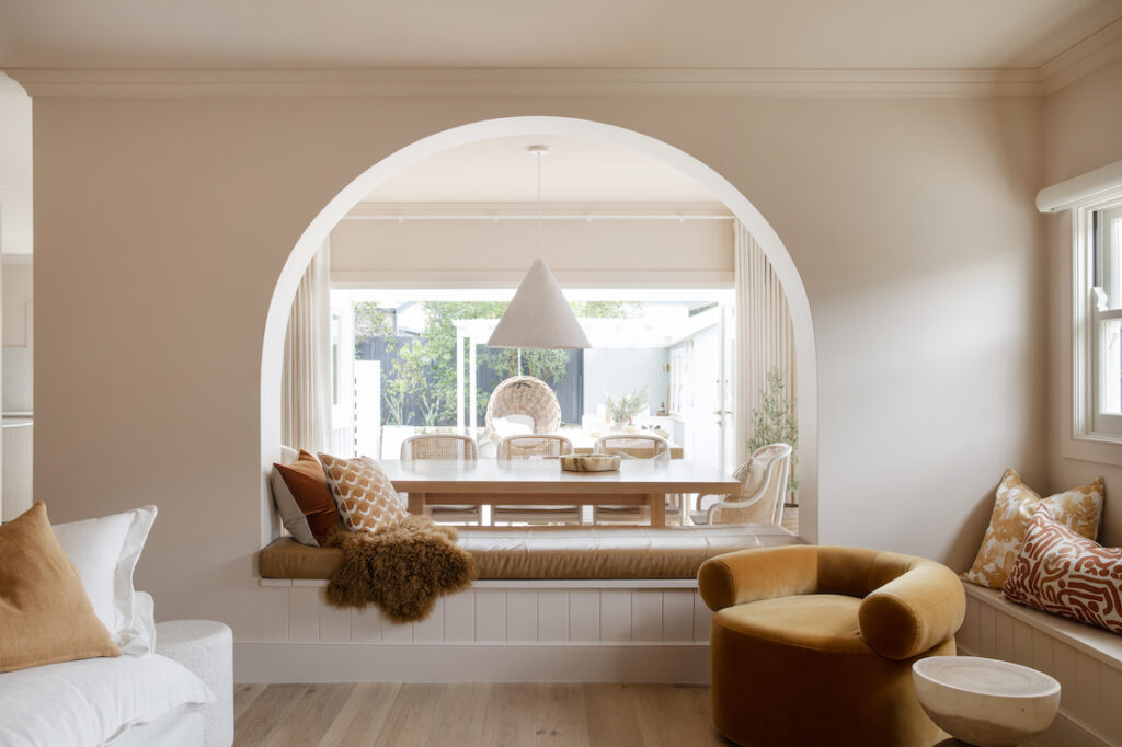 Bản chất các đường cong hữu cơ trong phong cách thiết kế bạn đang theo đuổi vừa là giải pháp khoanh vùng không gian hợp lý vừa để phản ánh tính cách riêng của mỗi người. Nên để đường cong tự do thể hiện và không bị giới hạn bởi kết cấu cũ của ngôi nhà.