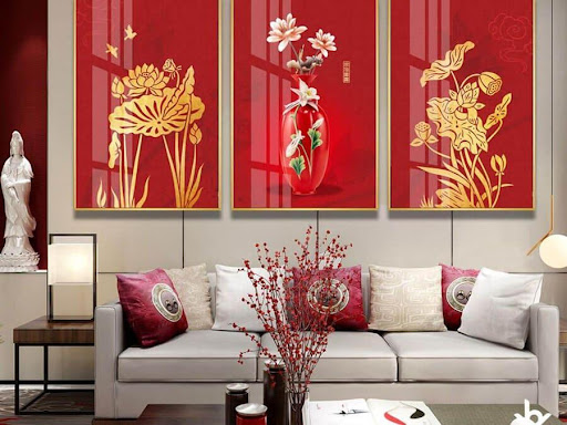 Một bức tranh đầy không khí Tết, treo trang trọng nơi tường nhà hoặc ở góc cầu thang là một ý tưởng hay, tối giản cho người yêu thích ngăn nắp. Không cần dọn dẹp bày biện quá nhiều, mà lại ý nhị, mang giá trị thẩm mỹ cao. Đây là cách thức trang trí Tết tối giản phù hợp với mọi ngôi nhà.